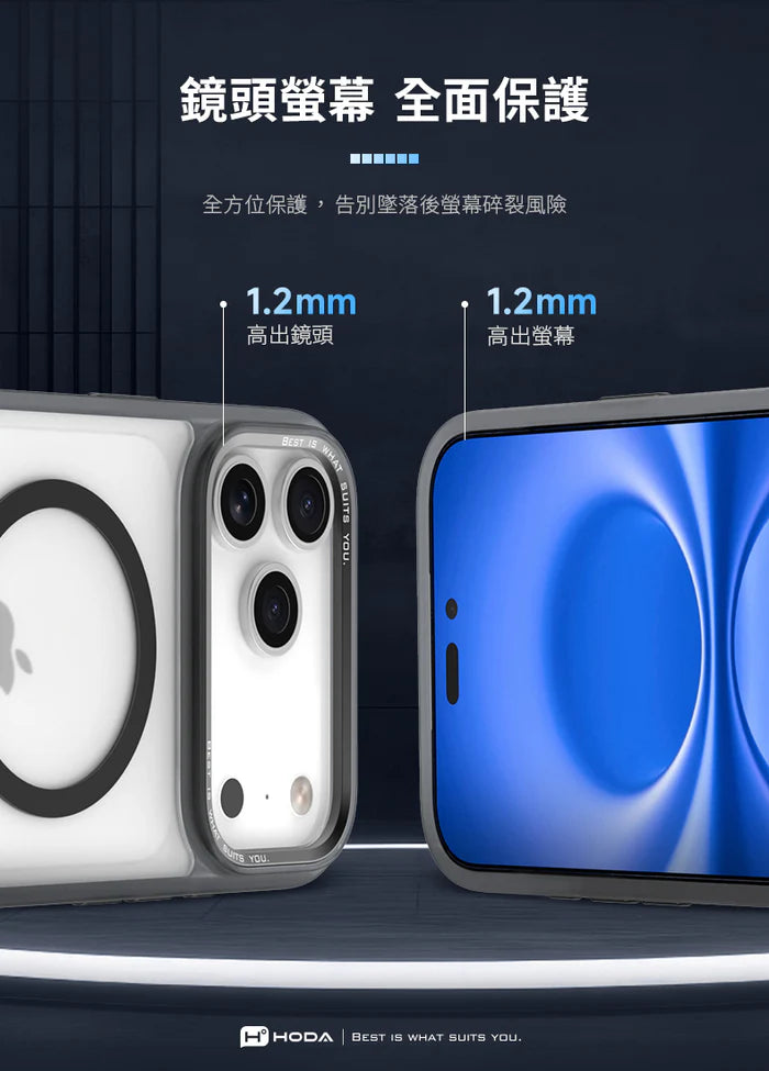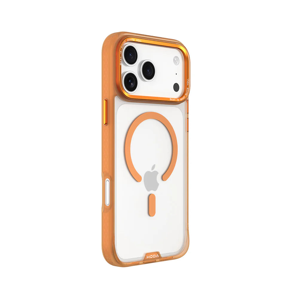 Hoda品牌 - MagSafe磁吸柔石玻璃軍規防摔保護殼(橙色)